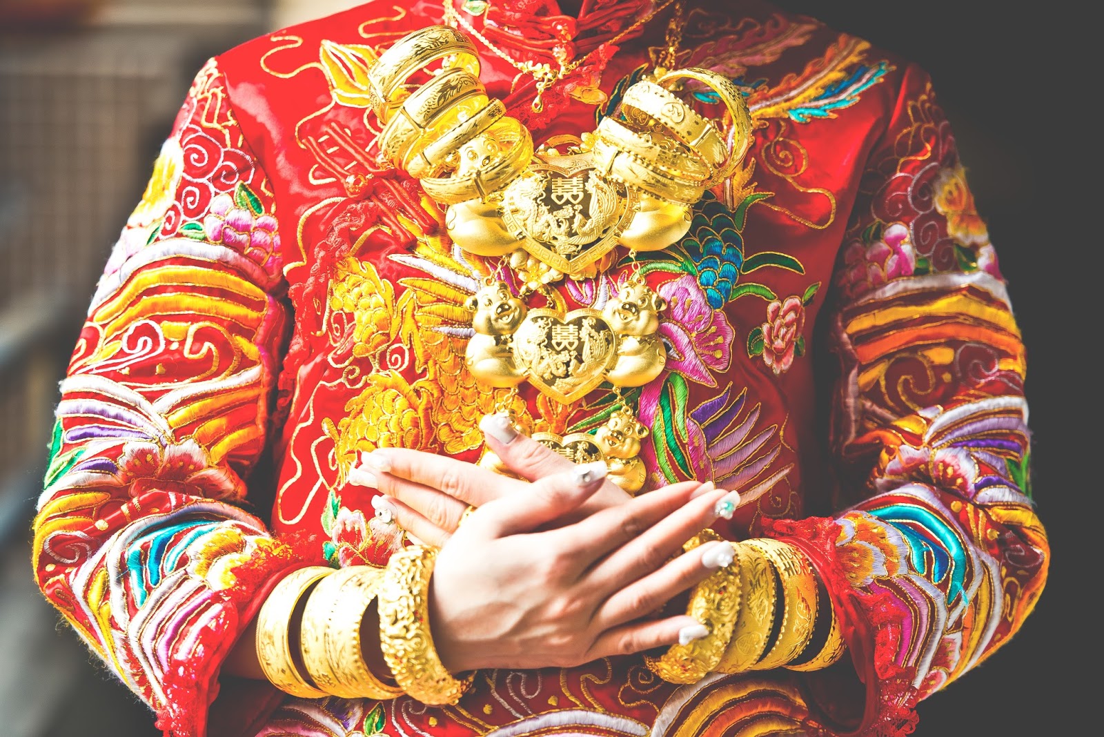 龍鳳鐲在中式婚禮中是不可或缺的。根據中國傳統,雙方家長均會贈予新娘一對龍鳳鐲,寓意新人龍鳳呈祥(粵語諧音為“情長”),情比金堅。