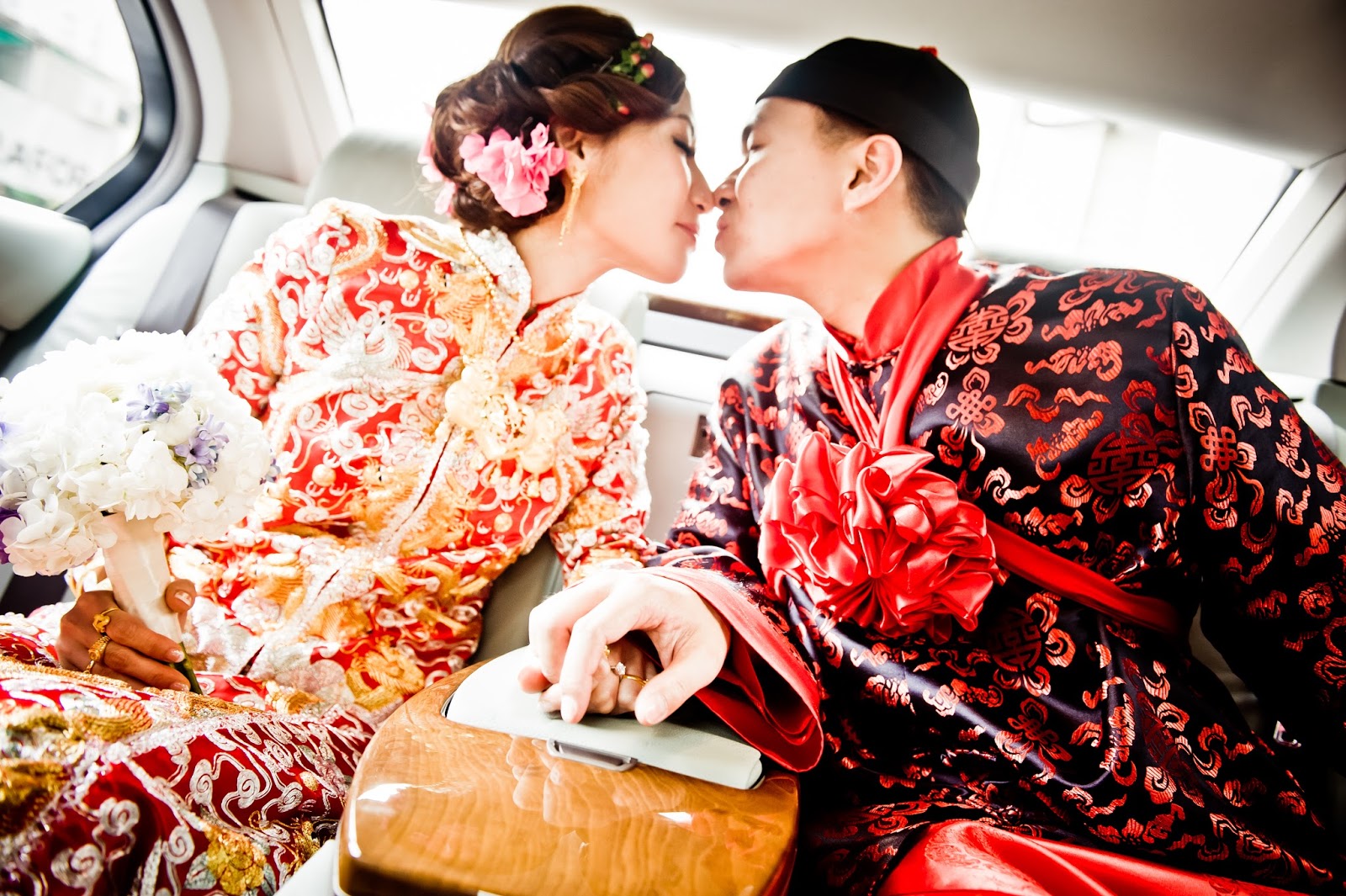 新娘穿裙褂,新郎總不能穿西裝,故可考慮相襯的馬,相近的暗花和刺繡,和新娘的裙褂“天生一對”。