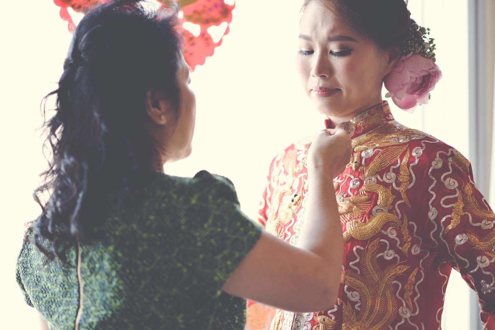 傳統的裙褂是母親繡給女兒的嫁衣,它代表對女兒的一種祝願。母親心中輕輕的糾結,擔憂,欣慰又甜蜜,都藏在那一針一線一縷金絲裙褂中。