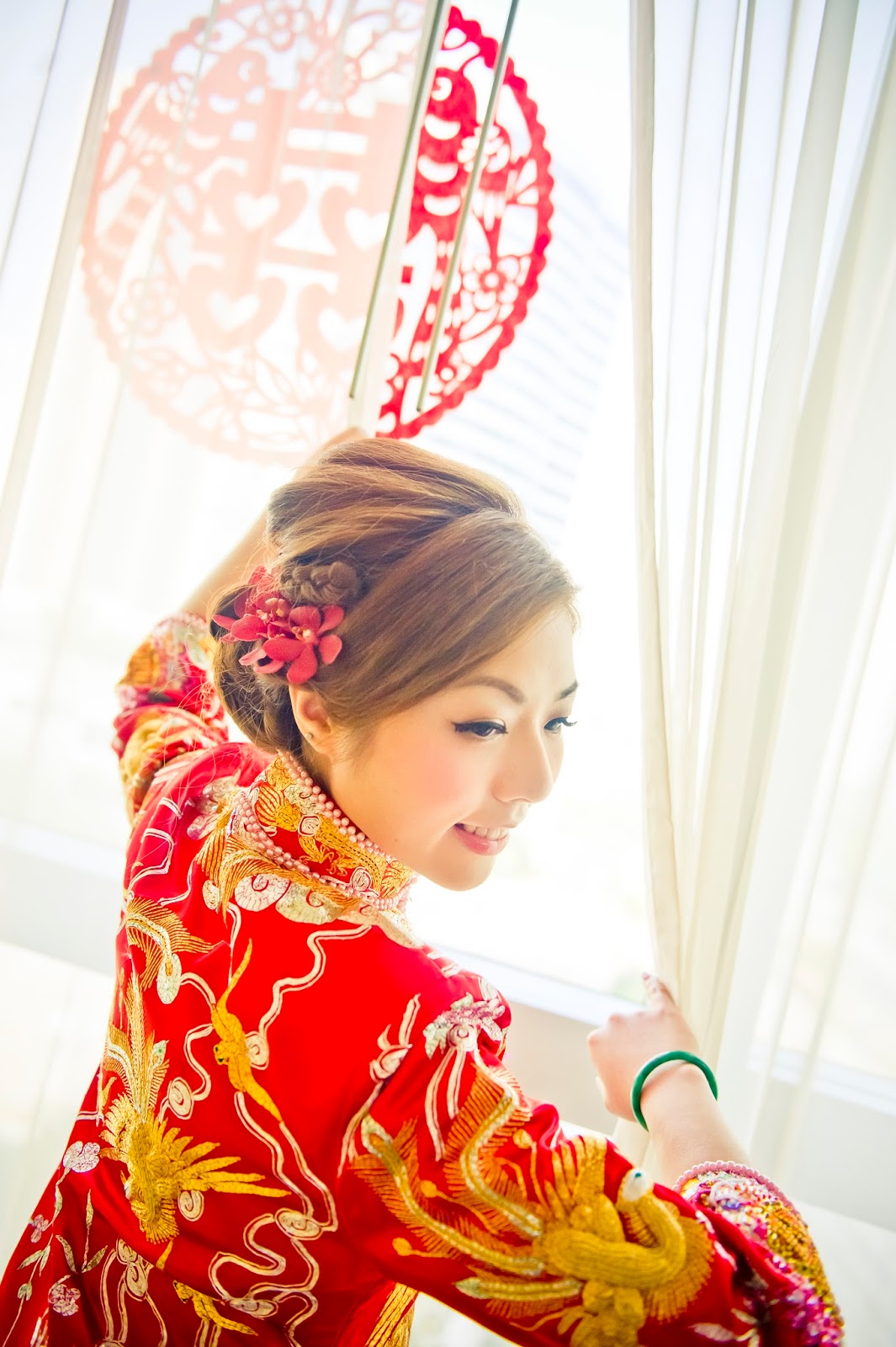 【裙褂分開試穿】傳統上,裙褂是"著一次,嫁一次",所以試裙褂時不能同時試穿整套褂,須分上、下半身試穿。一般的裙褂袖長四個骨,袖口到手腕以上3寸為合適,褂腳應剛蓋過鞋面。裙褂裡面應再著一件三個骨袖長的專用睡衣打底。