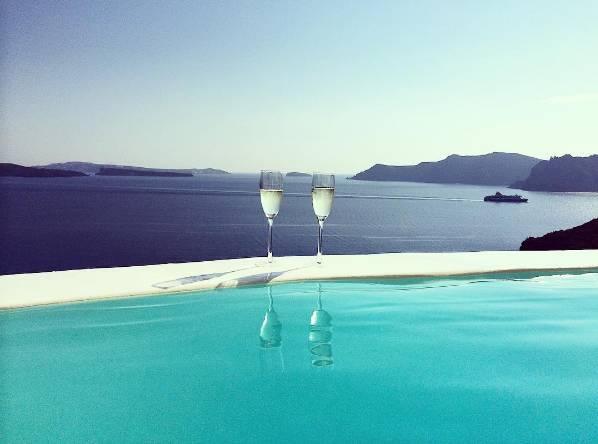 可以盡情欣賞湛藍的地中海、全景火山、和聖托裡尼獨有的峭壁上的純白建築——總之就是美得跟個夢一樣,還不想醒。